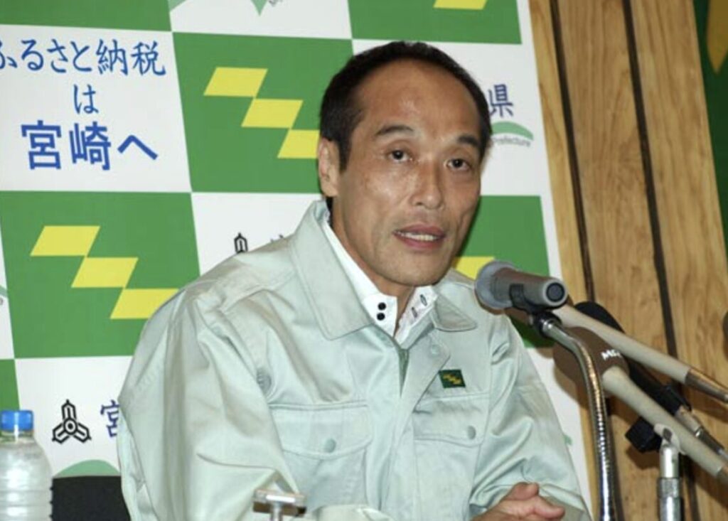 2007年に就任した東国原知事。就任直後の支持率は驚異の90%超えを記録し、宮崎マンゴーのPRや口蹄疫(こうていえき)対策などでその手腕は高く評価されていました。